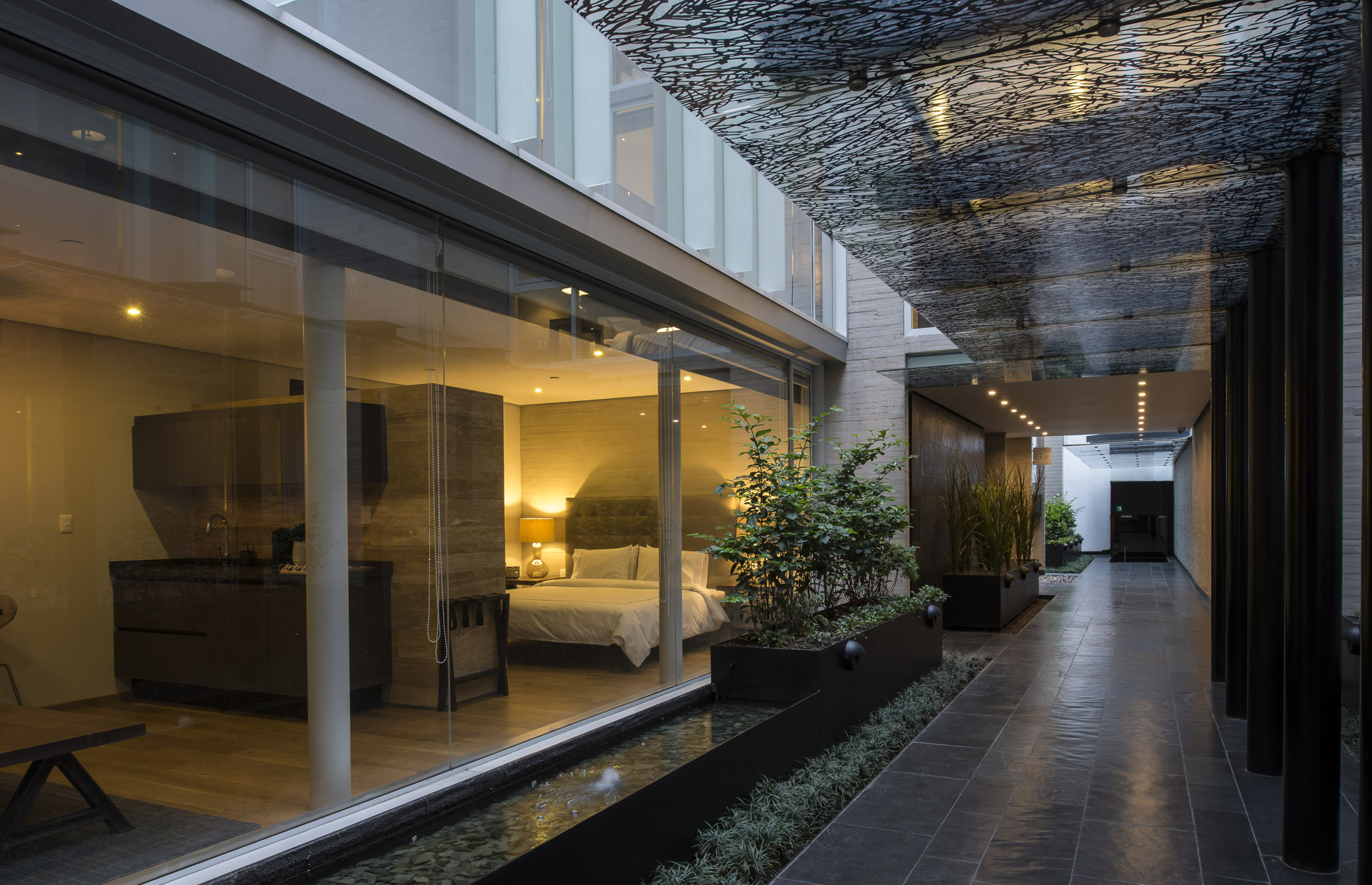 Located at the heart of Colonia Condesa, the project rescues an existing Porfirian-styled house listed by INBA due to its historic quality inserting a boutique hotel composed of 21 suites that are suitable for long-term stays.