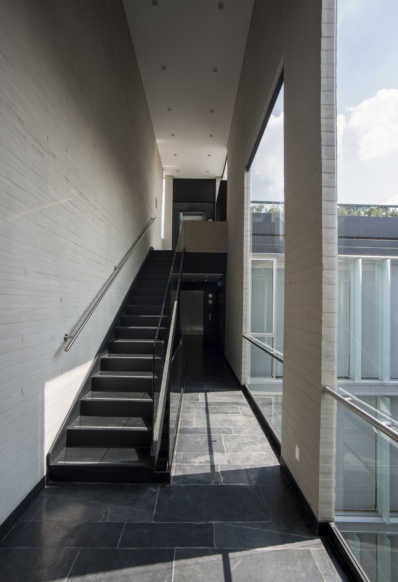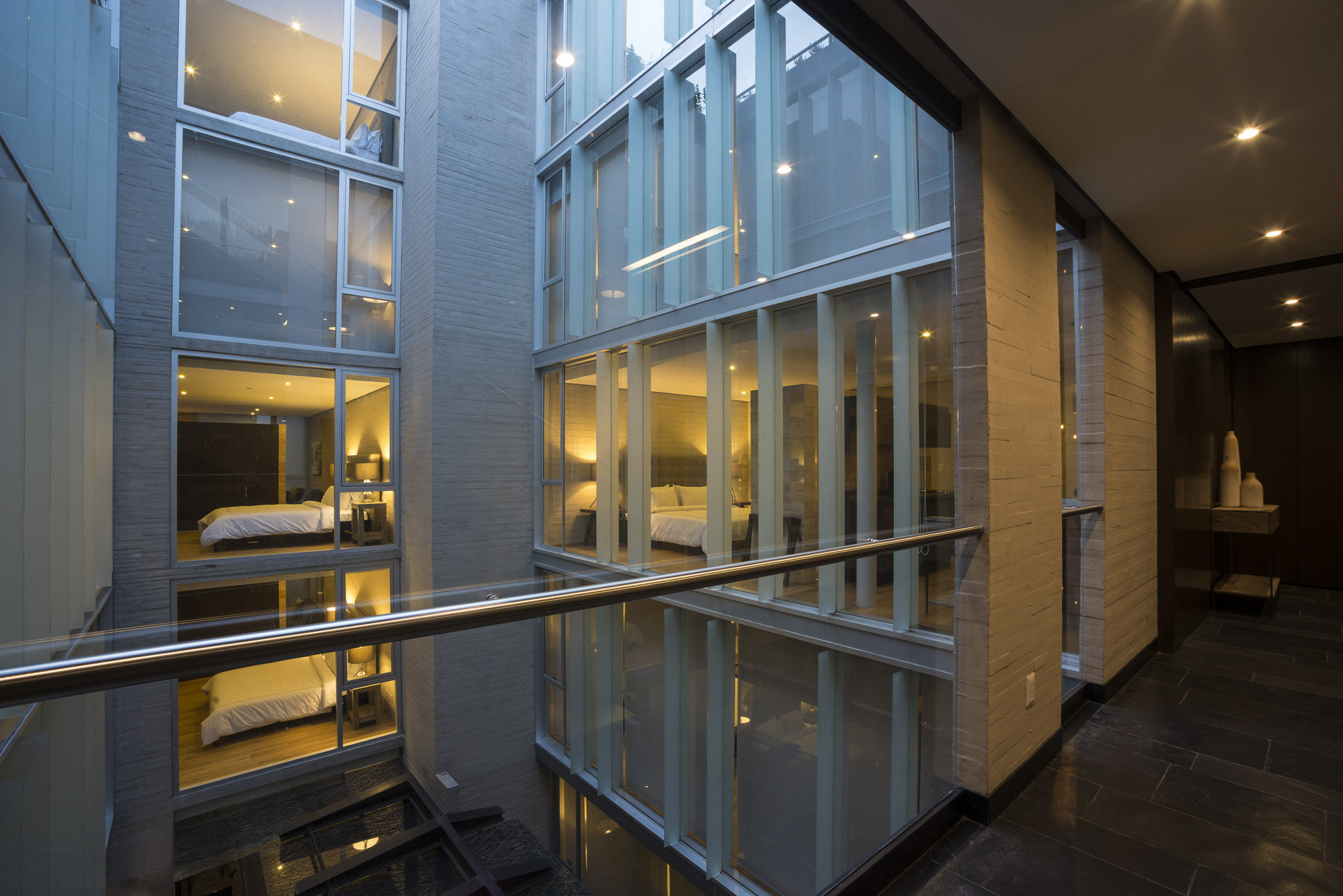 The house holds the hotel’s public-domain functions such as the reception area, administration and restaurant. The suites are distributed in 4 different volumes of 5 levels that are arranged in a scheme of voids and solids allowing light and air to flow through green patios.