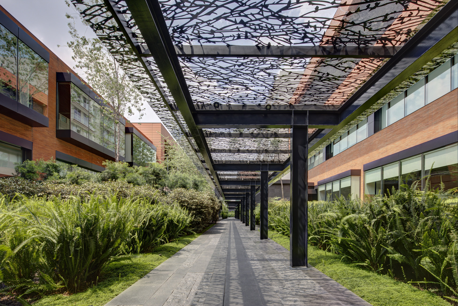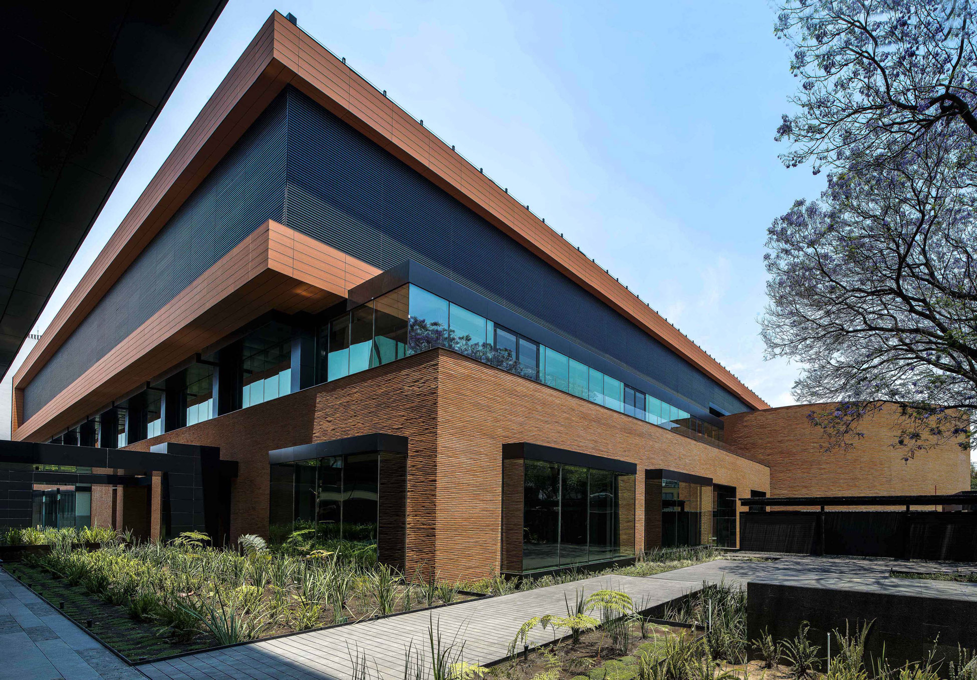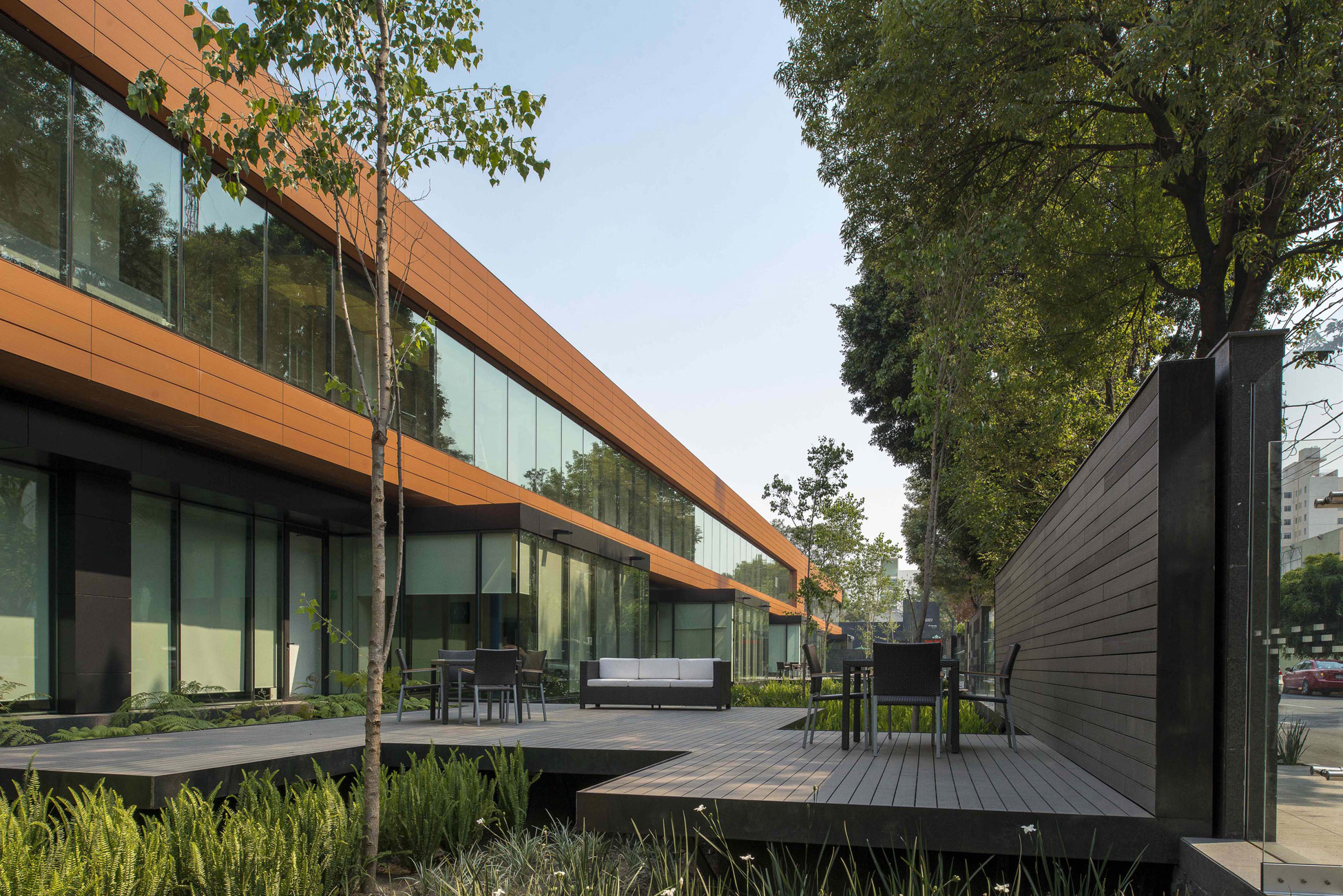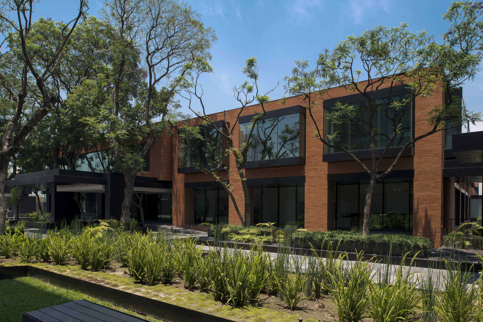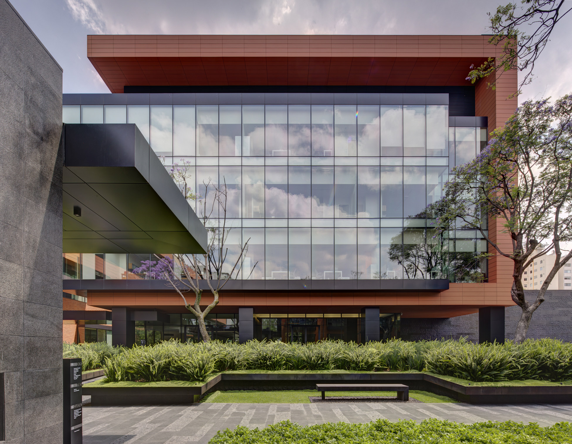 This award-winning corporate project is located in the southern part of Colonia del Valle in Mexico City. The three buildings that once housed the Abbot laboratories were successfully rehabilitated. The project is conceived from the idea of working inside a garden, readopting the existent structures and completing them with a new building that transforms the industrial campus into a green space, an ideal working environment.