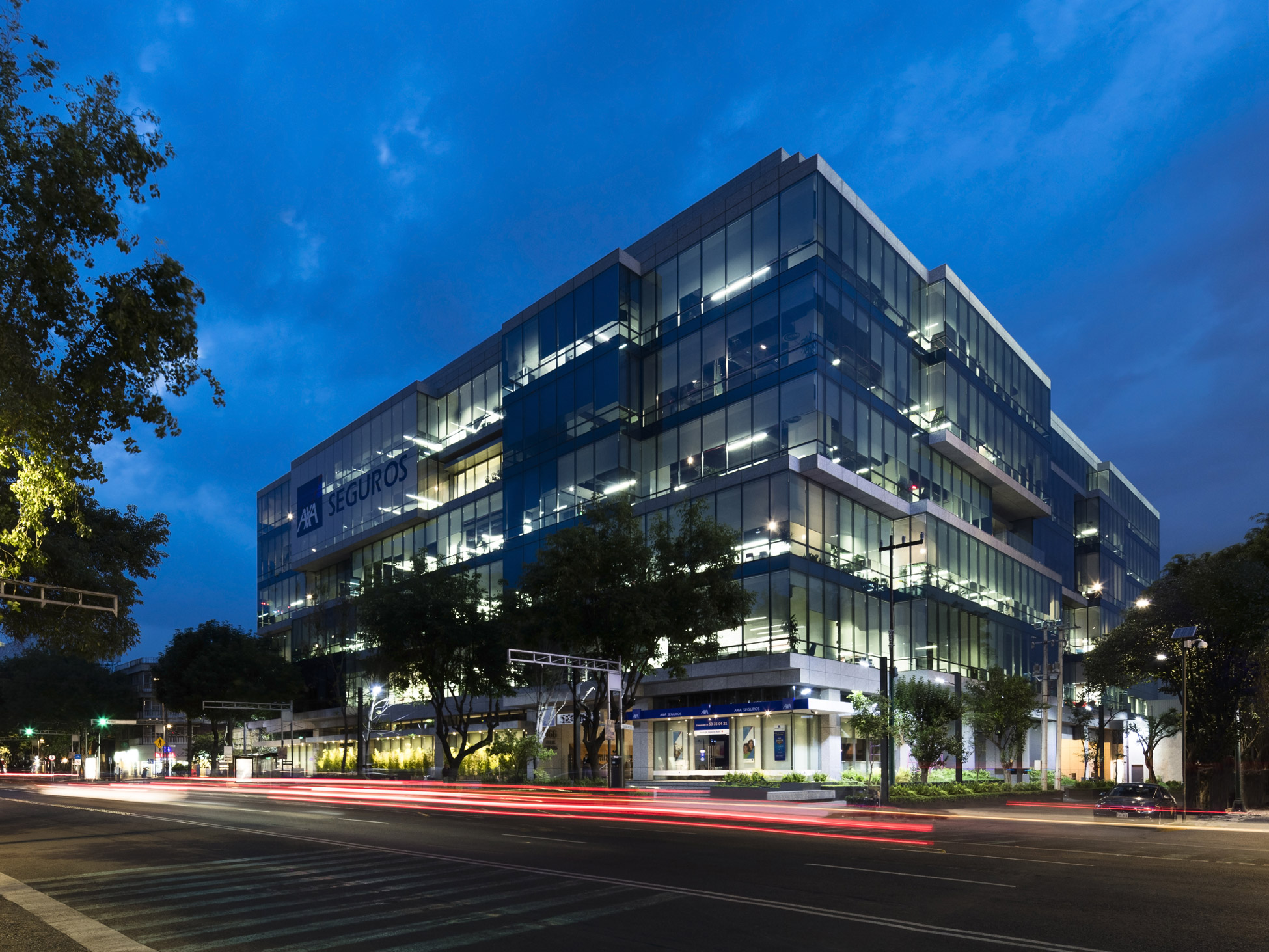 Corporativo Axa Seguros is located at the heart of Colonia del Valle with 4000m2 plants, imposed on a lower scale residential context that has been transformed over time into a mixed area with commercial and institutional buildings.