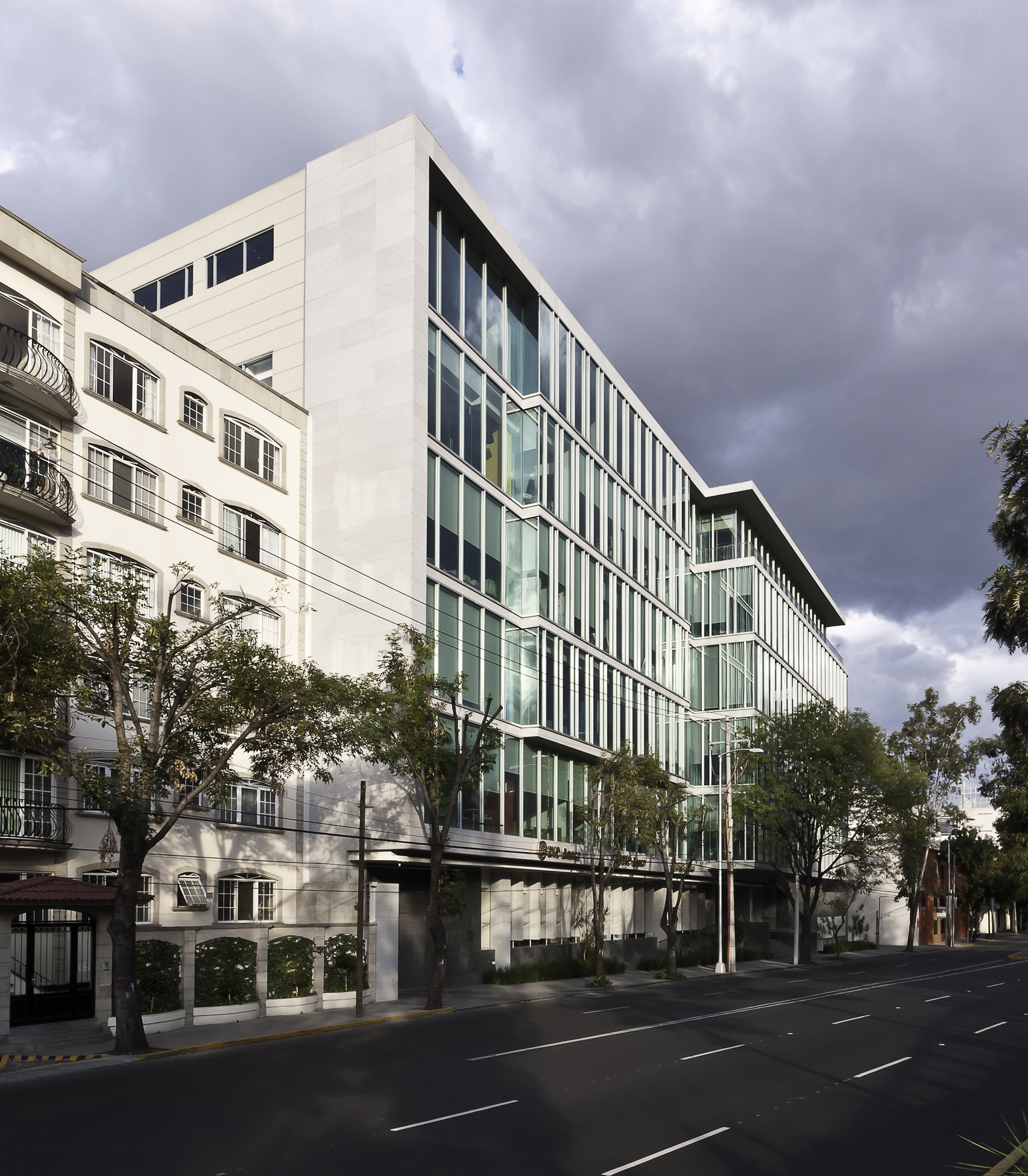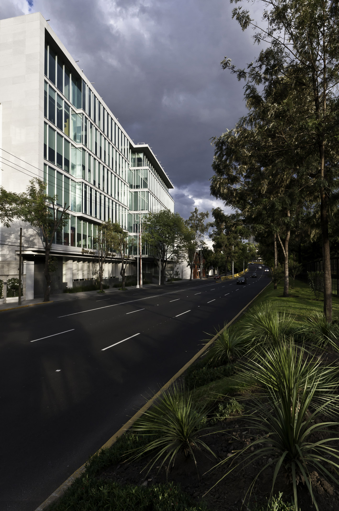 Located in the southern part of Mexico City on the former bank of the Mixcoac river, current east-west road axis, the office building is built on a human scale creating a corporate ambiance that stablishes a mellow atmosphere within the chaos of DF.
