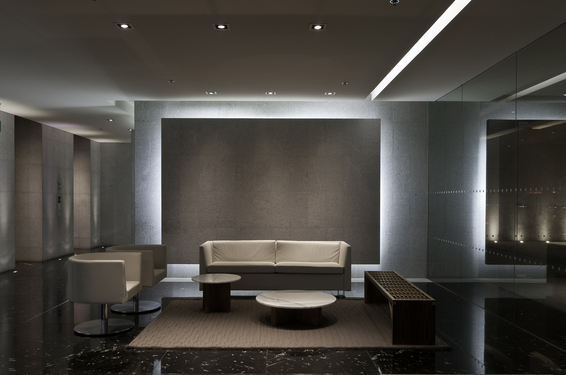 Only two different materials that play with the texture and the lighting were used for the entrance hall and the common areas. Both the exclusive use of indirect light and the simplicity of its almost monastic design strengthen the inner peace of its users as they roam through the building.