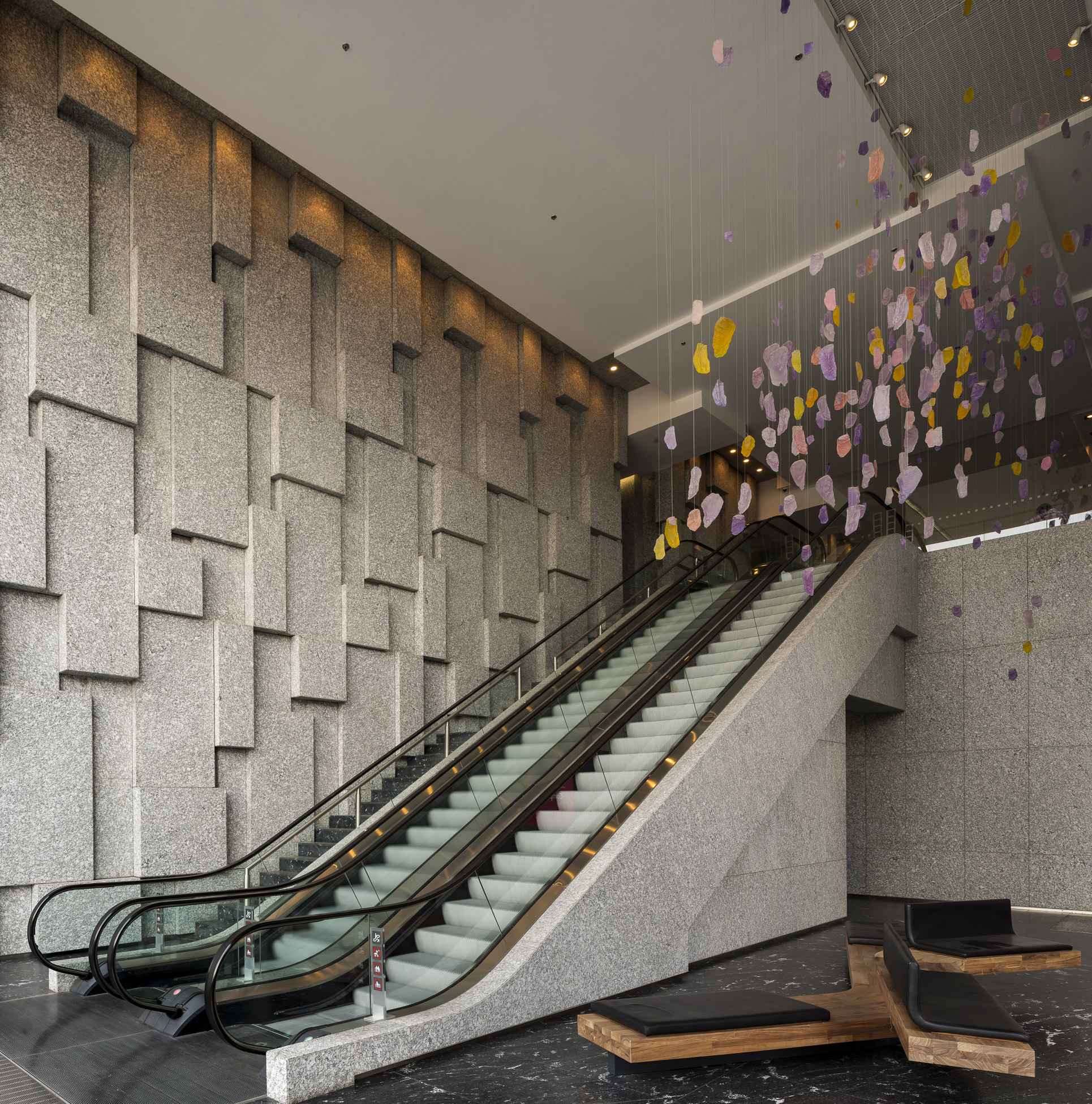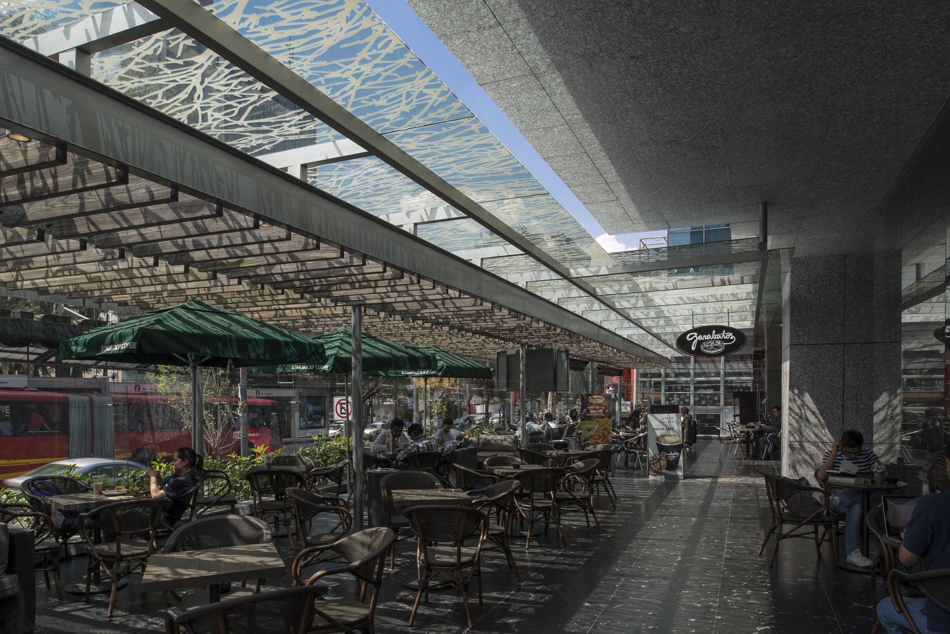 The different volumes of the building also create a large-scale urban room which is the heart of the cultural and commercial activity of the complex, housing lobbies, businesses and living and contemplation areas which have now become part of the public space.