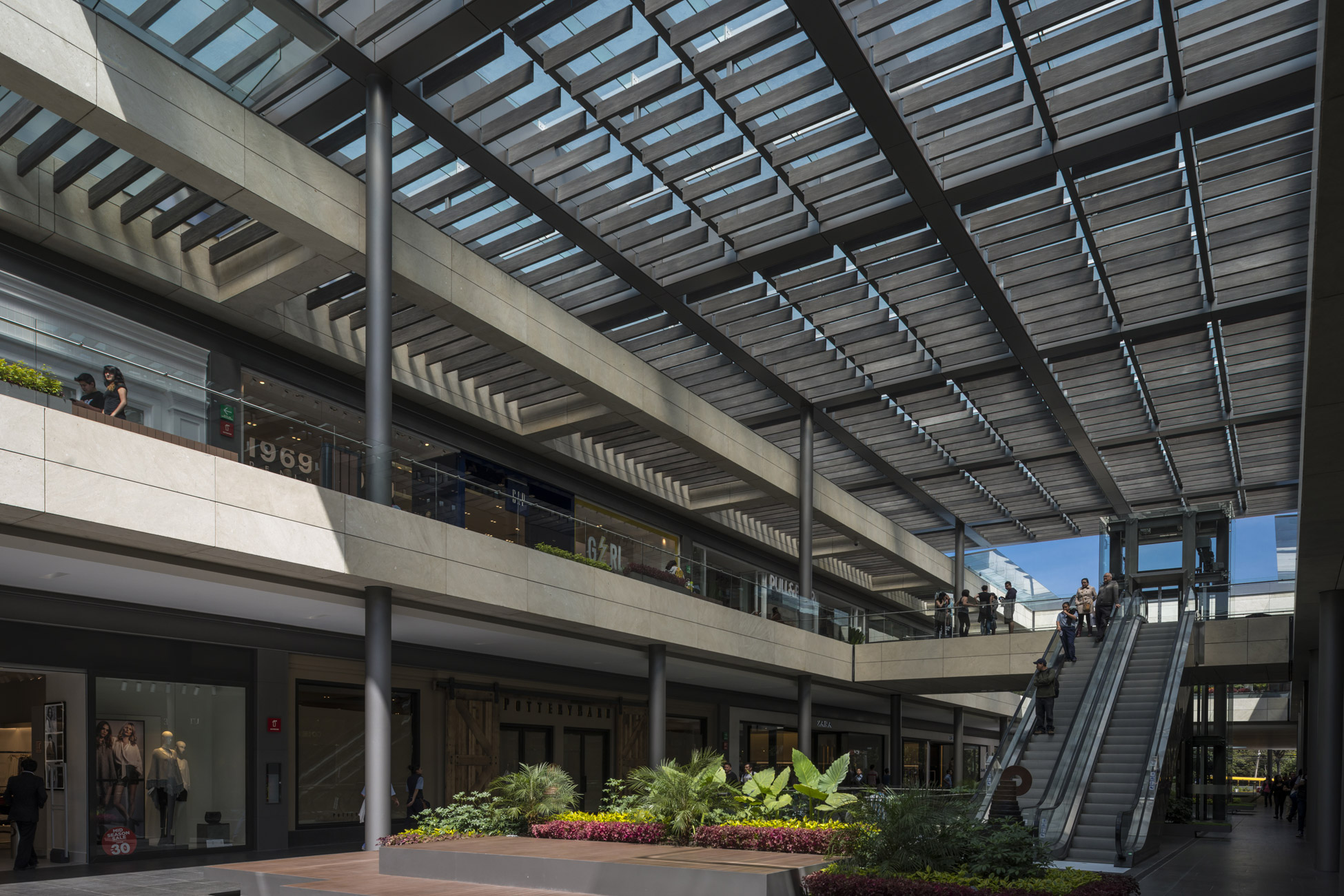 The architecture was designed to stimulate economic activity and to act according to its strategic vision: people that visit the plaza will shop there too.