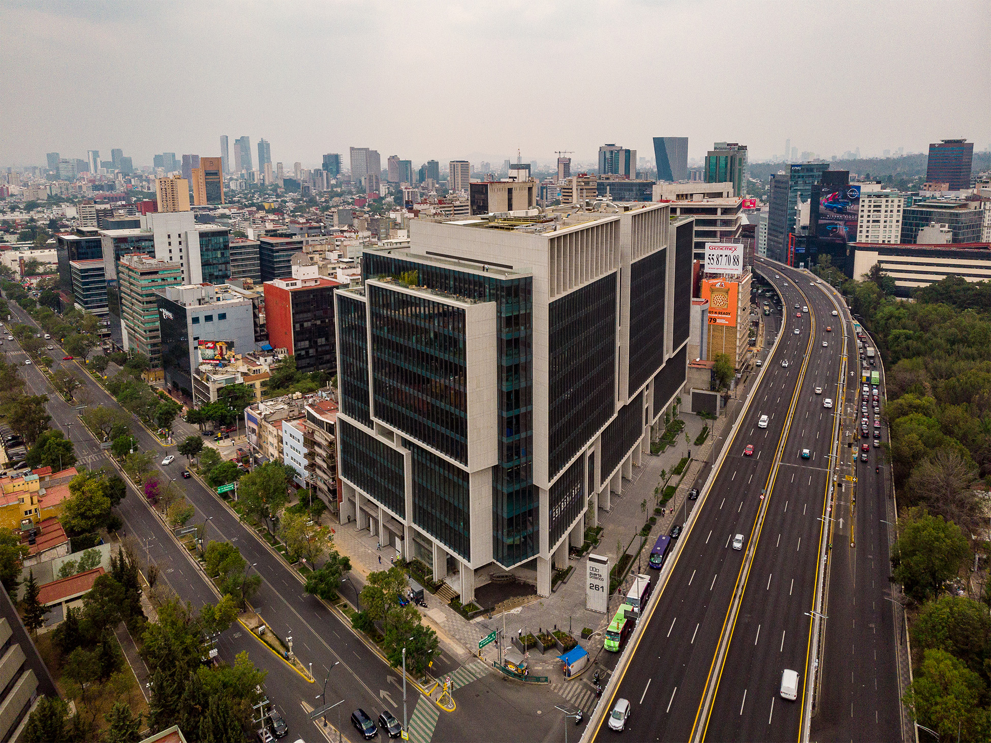 Ubicado al poniente de la ciudad de México, sobre Boulevard Manuel Ávila Camachoesquina con Ejército Nacional, el proyecto está compuesto de planta baja con zonacomercial, doce niveles de oficinas y Roof Garden. Bajo nivel de banqueta cuenta connueve sótanos para estacionamiento, el nivel de cisternas y planta de tratamiento.Para reducir el impacto visual de la masividad imponente del edificio, este se diseñócon base en una serie de volúmenes fragmentados en varios cubos de cristal y granito.Dicha fragmentación, permitió la inserción de varias terrazas, creando unatransparencia real y virtual que hace la fachada menos opaca y más amable al peatón.La eficiencia del cristal y su coeficiente de transmisión de luz permiten iluminaciónnatural al interior de las oficinas con una mínima transferencia de calor al interior.Con la intención de mitigar el deterioro visual y la barrera que supone el nivel elevadodel Periférico y reanimar el tránsito peatonal sobre las aceras circundantes al proyecto,se implementaron jardineras con frondosa vegetación y árboles que contrastan con laaspereza y hostilidad del contexto.